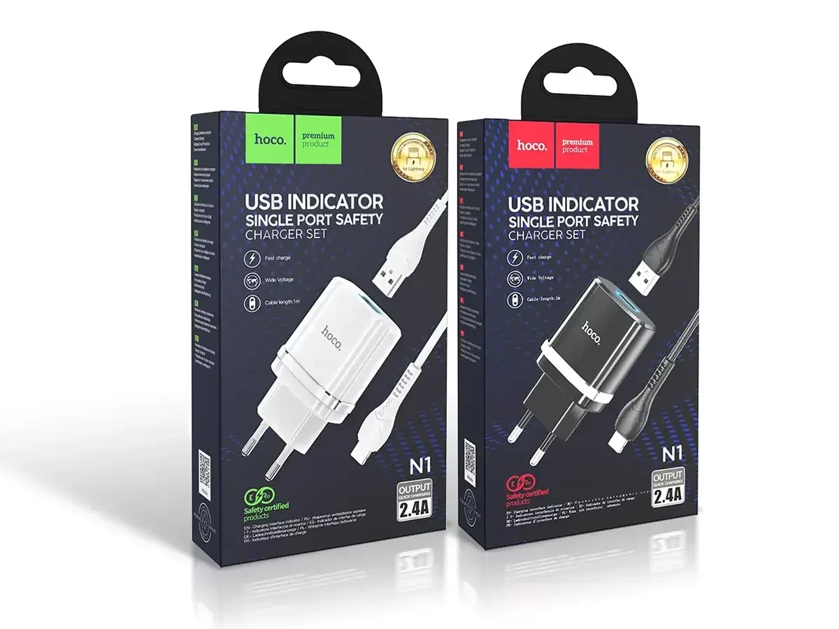 Зарядний пристрій 220В 2,4А 12Вт 5В USBx1 з кабелем USB - Lightning Hoco N1 Ardent 120шт 8135