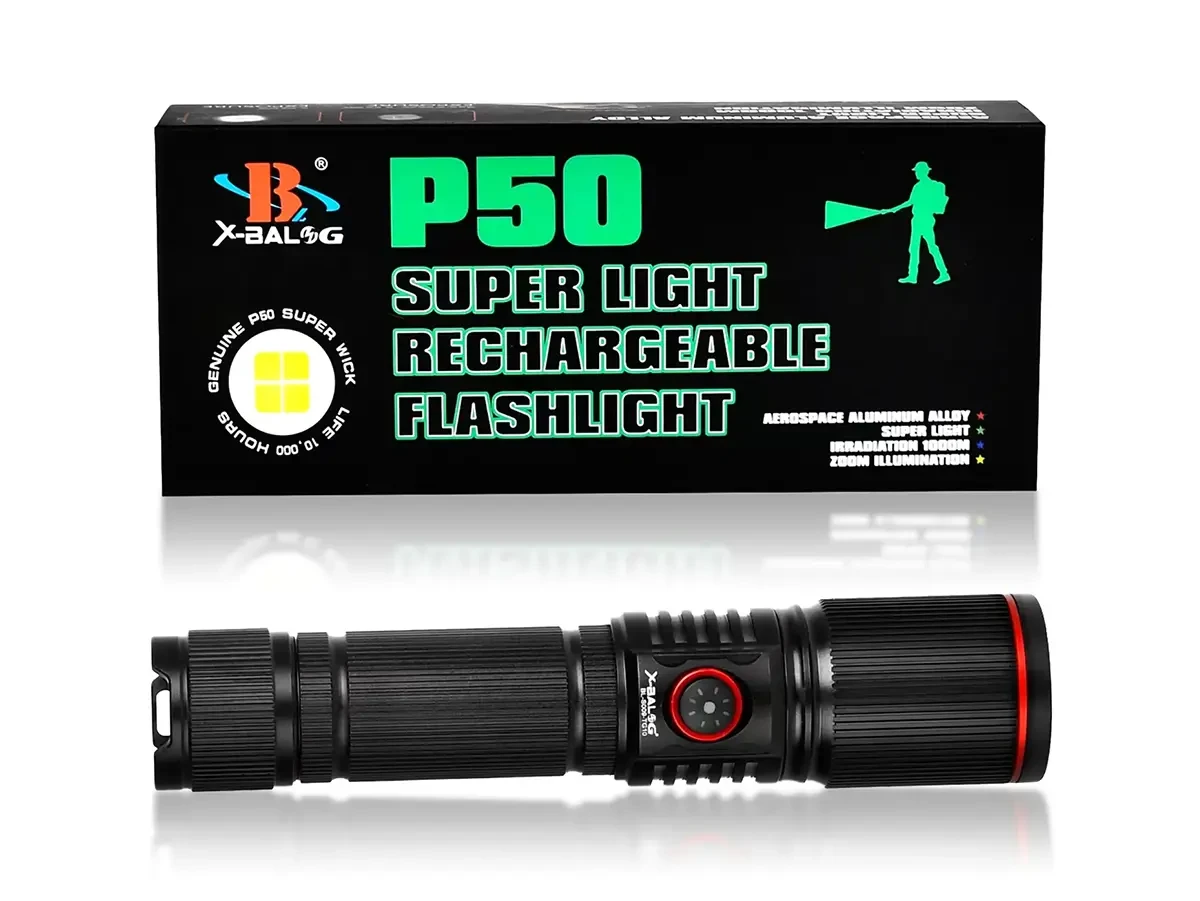 У ньому є 5 режимів освітлення (100%, 75%, 50%, Миготливий, SOS). Ліхтар упакований у картонну коробку. Акумулятор та кабель заряджання в комплекті.