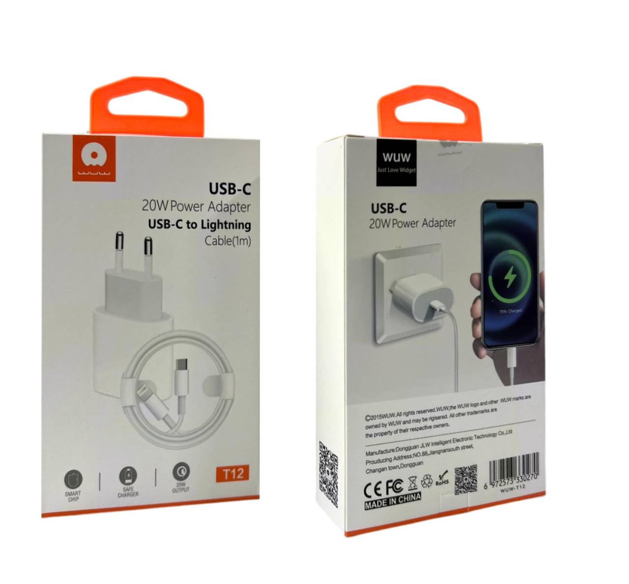 Зарядний пристрій 220В 5В/9В 20Вт з кабелем Type-C - Lightning WUW-T12 192шт 6339